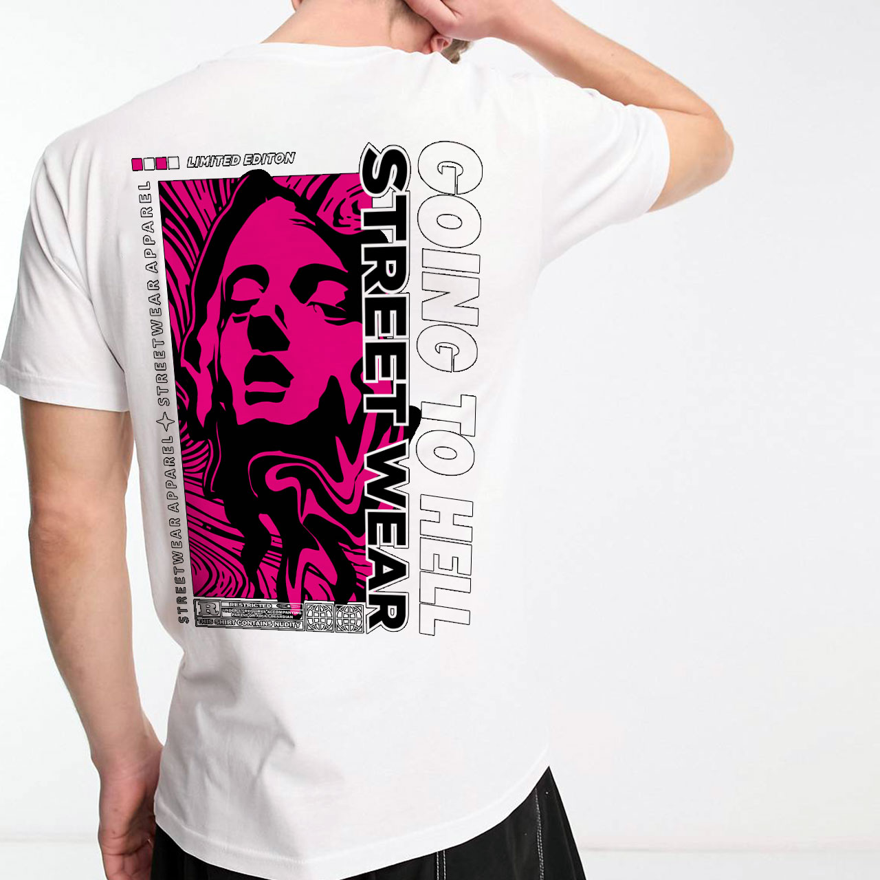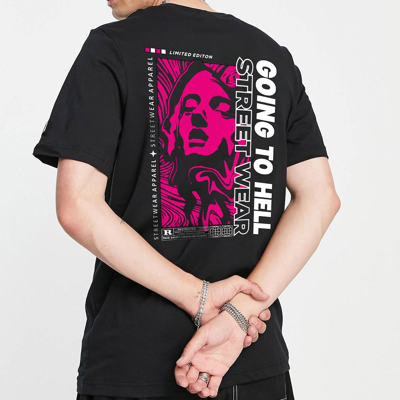 تیشرت نخی آستین کوتاه طرح رفتن به دوزخ going to hell با طراحی خاص گرافیکی، مناسب کسانی است که این سبک تصاویر روی لباس را می پسندند.