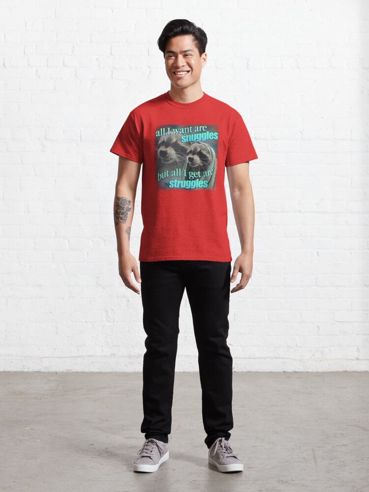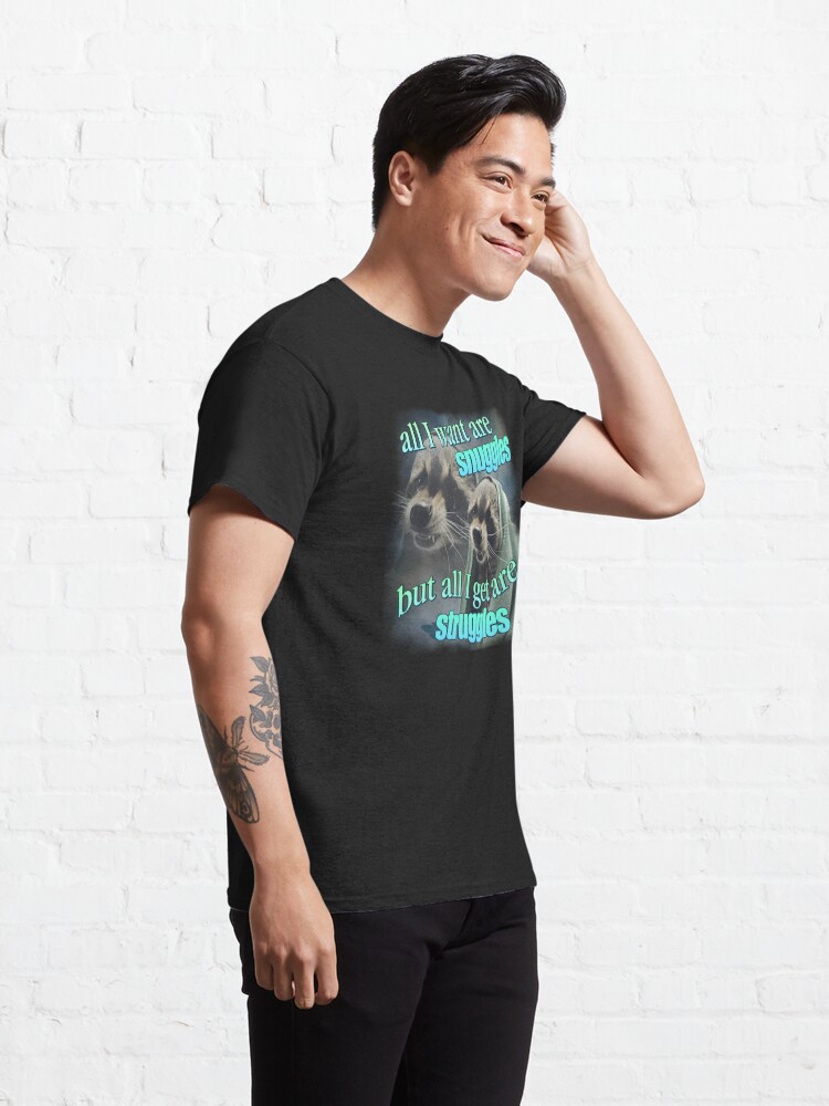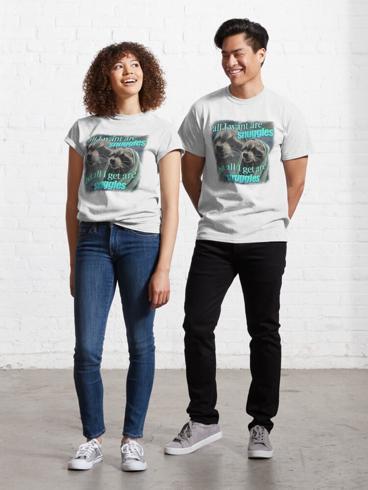 تیشرت نوین نقش طرح All I want are snuggles but all I get are struggles raccoon word art meme