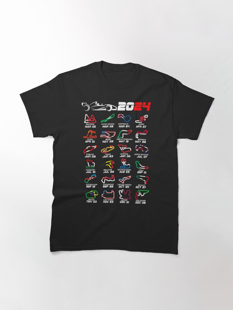 تیشرت نوین نقش طرح Calendar Formula race cars 2024 circuits colors