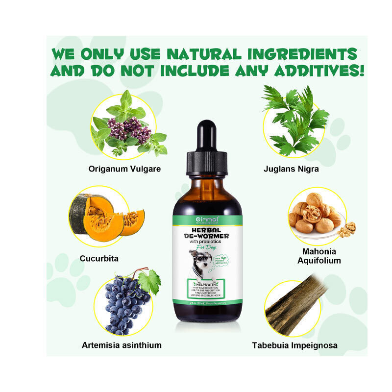 قطره گیاهی ضدکرم سگ اویمال Oimmal Herbal De-Wormer For Dogs حجم 60 میلی لیتر