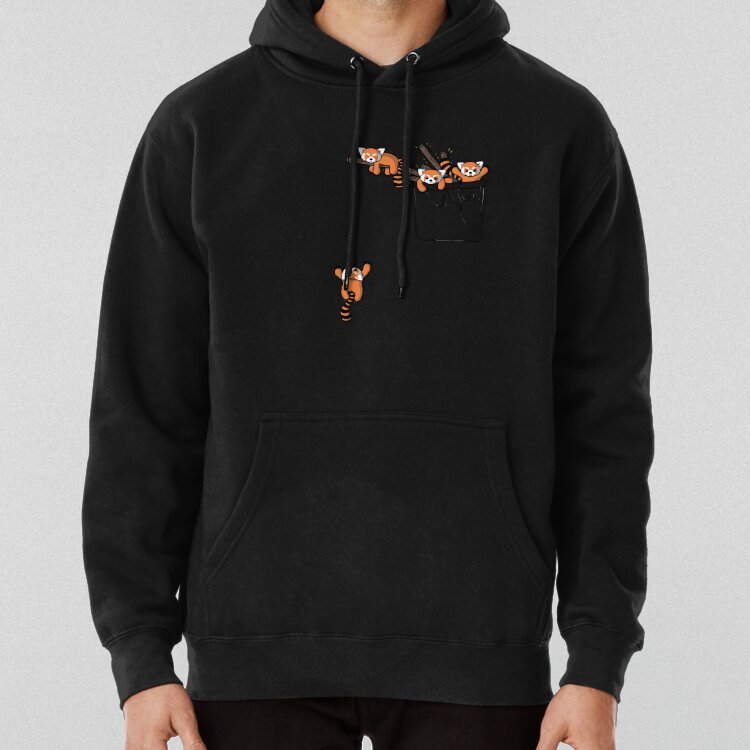هودی طرح خرس های پاندای قرمز Pocket Red Panda Bears از نظر ساختاری متفاوت است زیرا به جای آن که طرح در وسط لباس قرار بگیرد، روی سینه سمت چپ آورده شده.