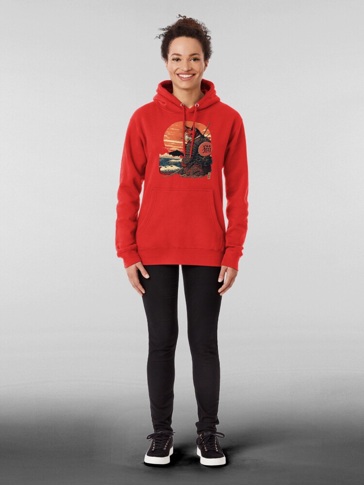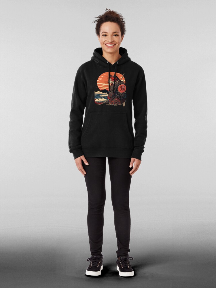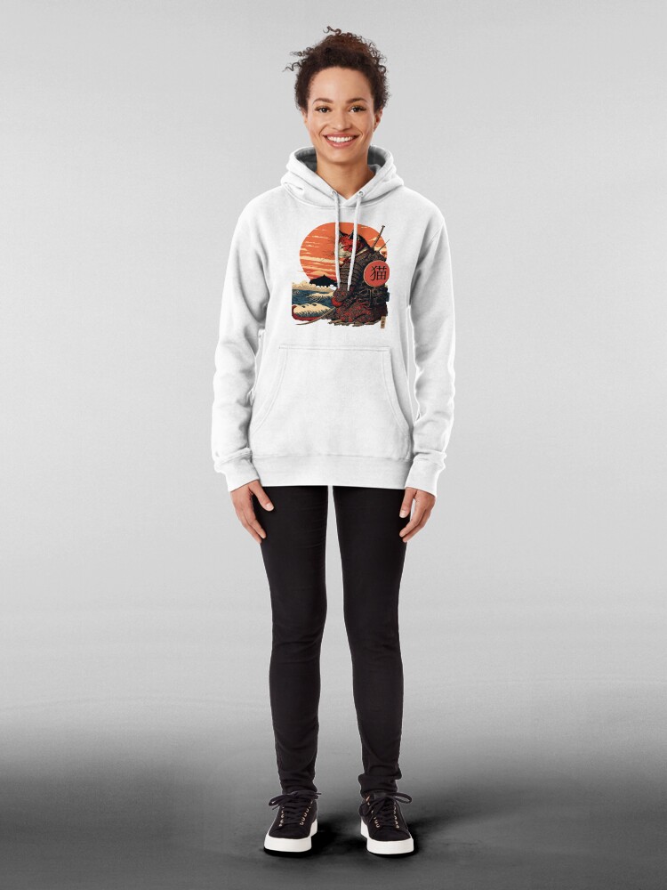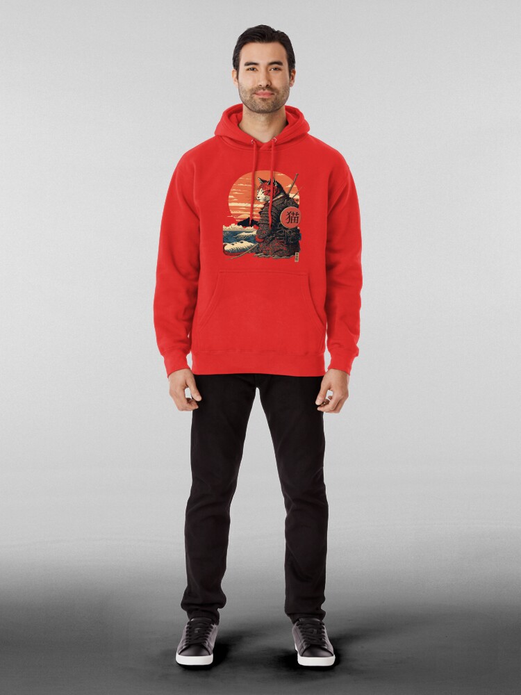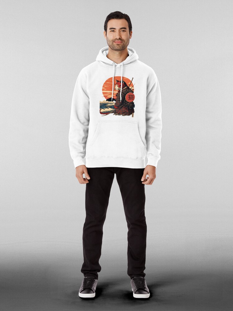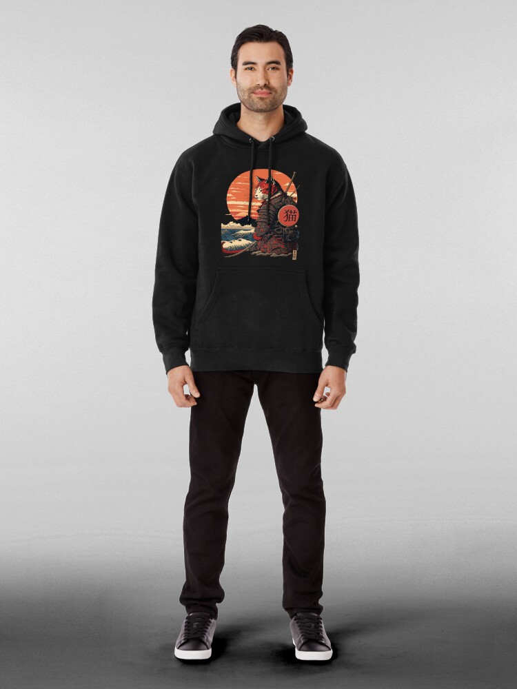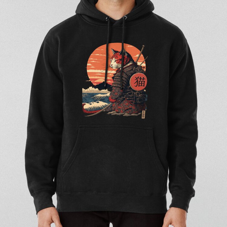 هودی نوین نقش طرح Ukiyo e Samurai Cat گربه ژاپنی سامورایی یوکیو دارای پارچه نخی ضخیم با لایه داخل کرکی است.
